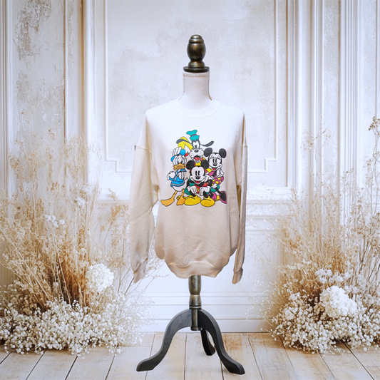 レトロミッキーフレンズ集合スウェット:白ベージュ【90's】