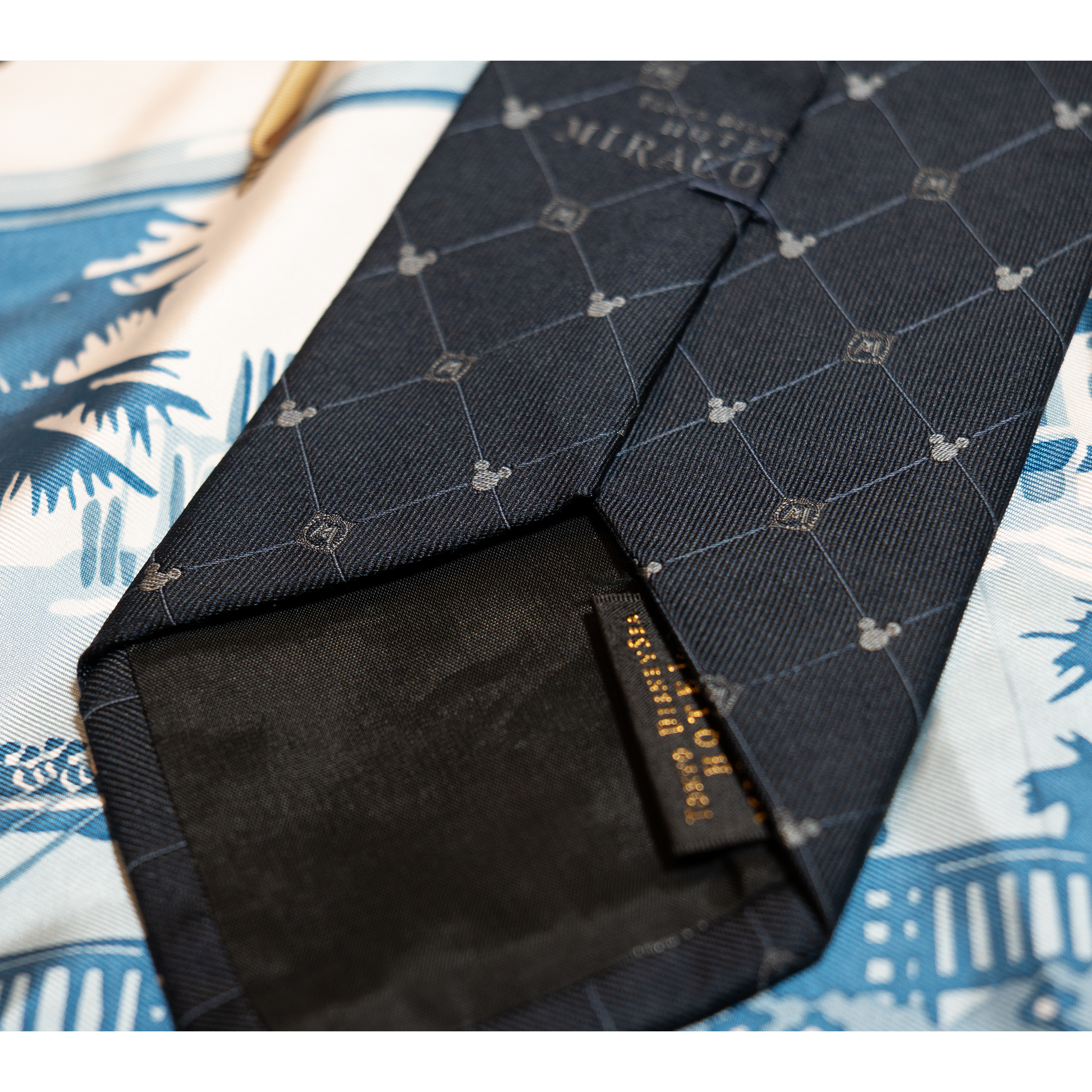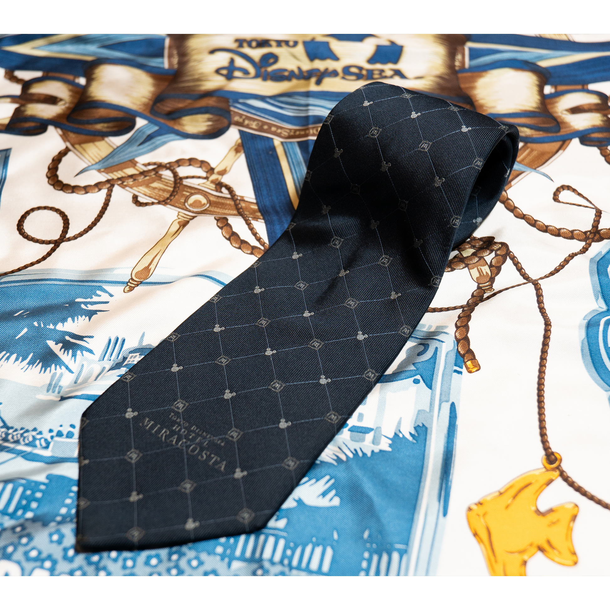 ディズニーシーでかつて完売されていたホテルミラコスタのベーシックなネクタイ。厚手で派手すぎずラグジュアリーなディズニーを演出する一本