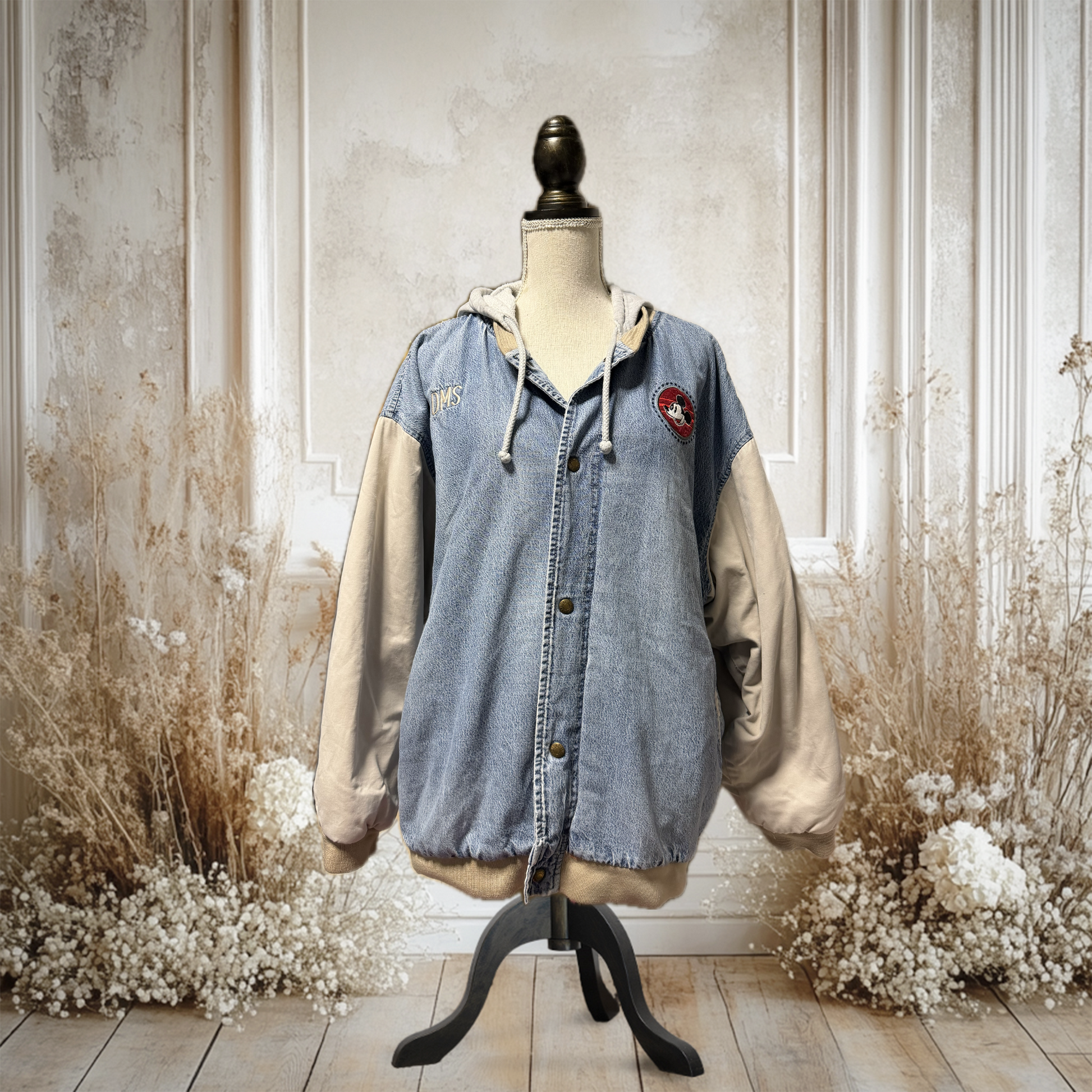 バックにはミッキーの刺繍が施され、フロントはシンプル、後ろ姿でしっかりディズニー感を演出。デザイン性と実用性を兼ね備えた、存在感のあるアウターです。
