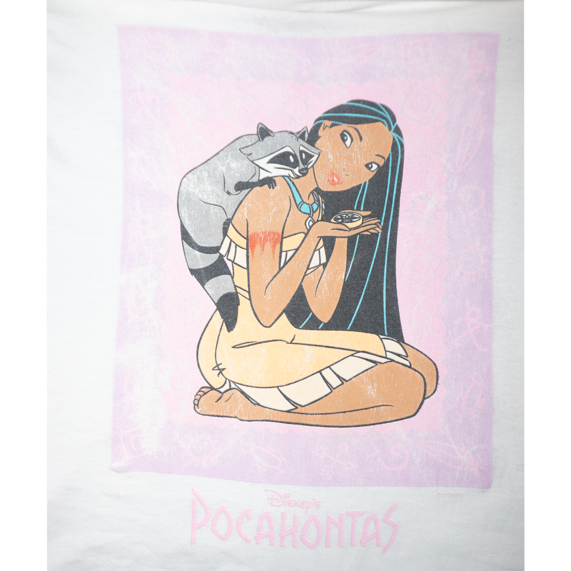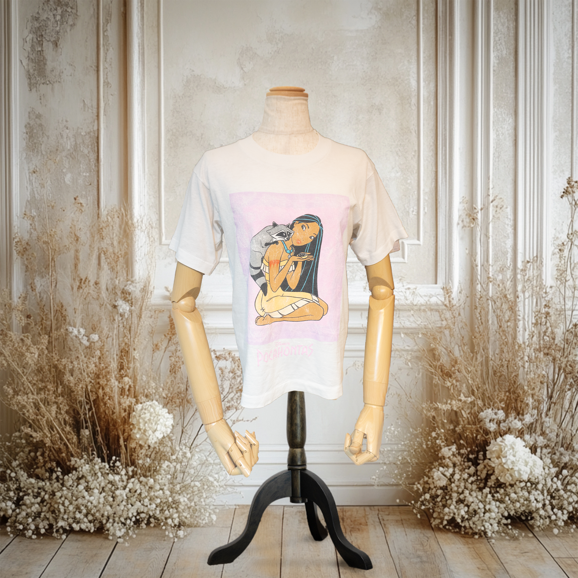 ディズニー映画ポカホンタスの主人公ポカホンタスとアライグマのミーコ、映画ロゴがプリントされたTシャツです。