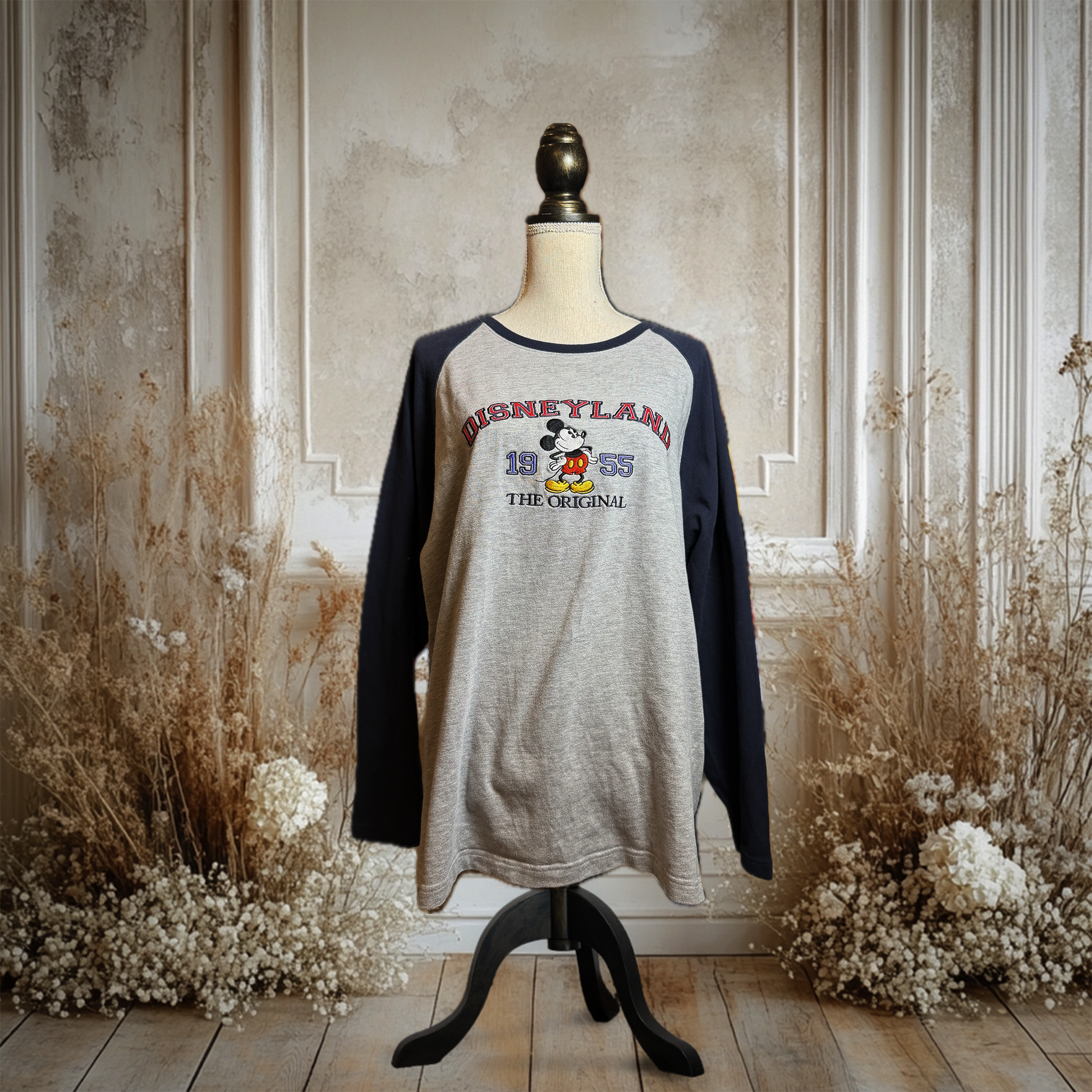 厚手のカレッジ風ロングTシャツです。シンプルなロゴロンTになっており、人気のスタンディングパイカットミッキーが特徴です。