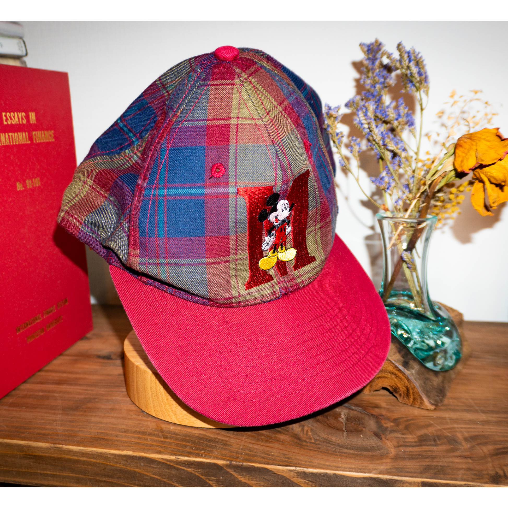 ミッキーの探偵風の赤を基調としたチェックの貴重なヴィンテージ帽子です。