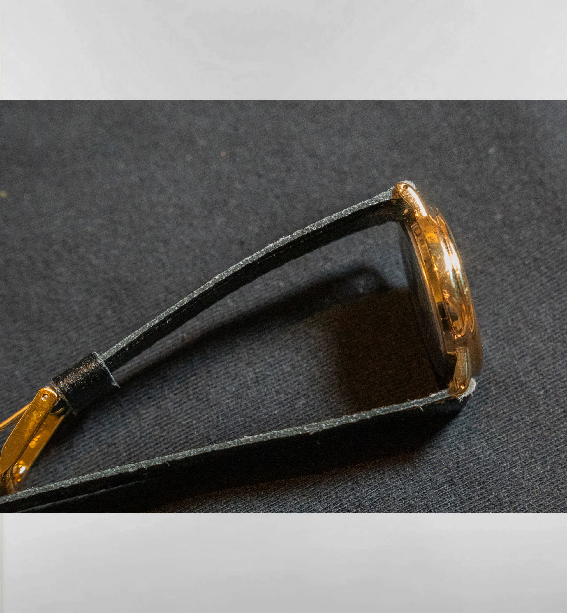 時計部分の劣化は比較的少ないですが、レザー部分のダメージが少しございます。