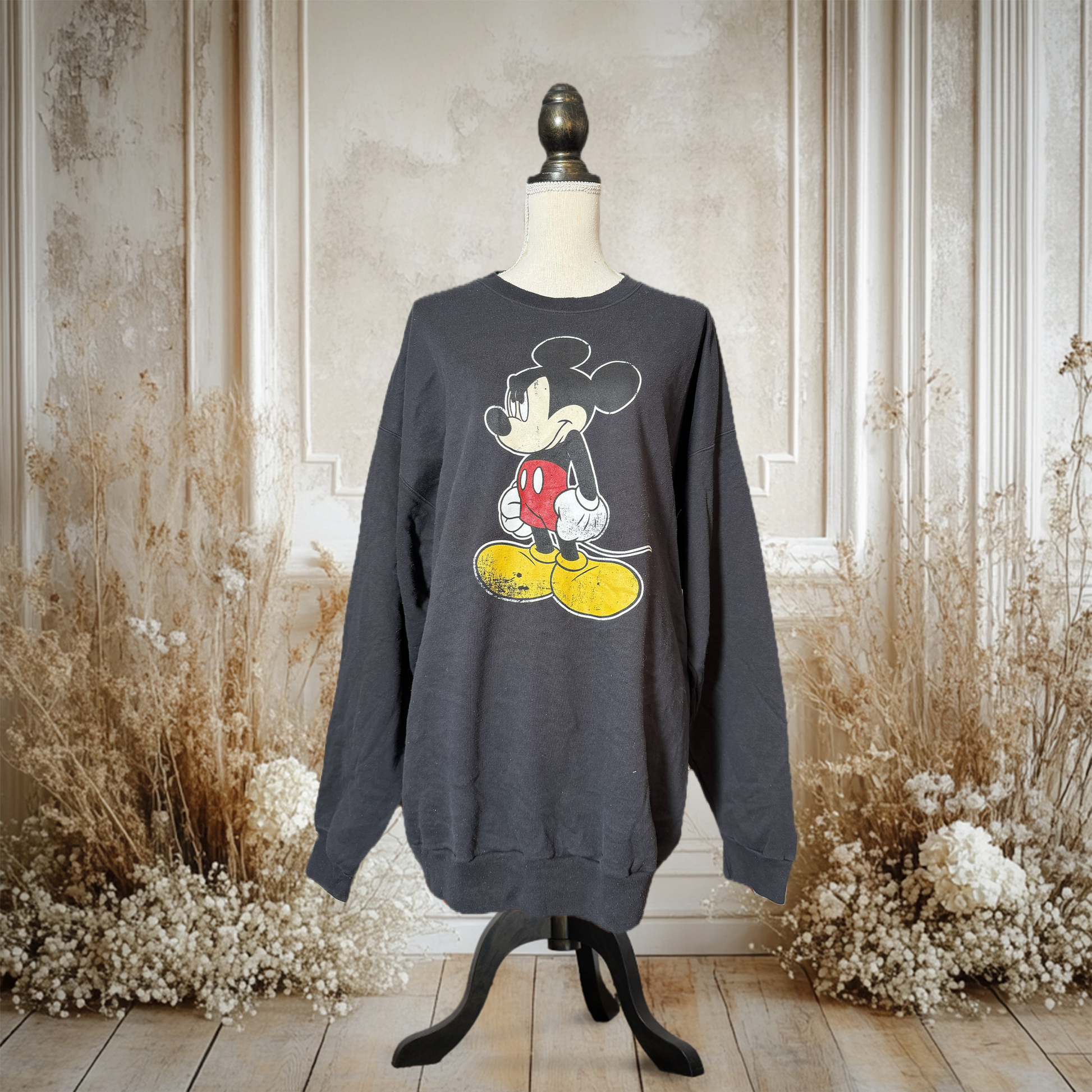 海外ディズニーパーク限定のクラシック・ミッキーが大きくプリントされたスウェット。