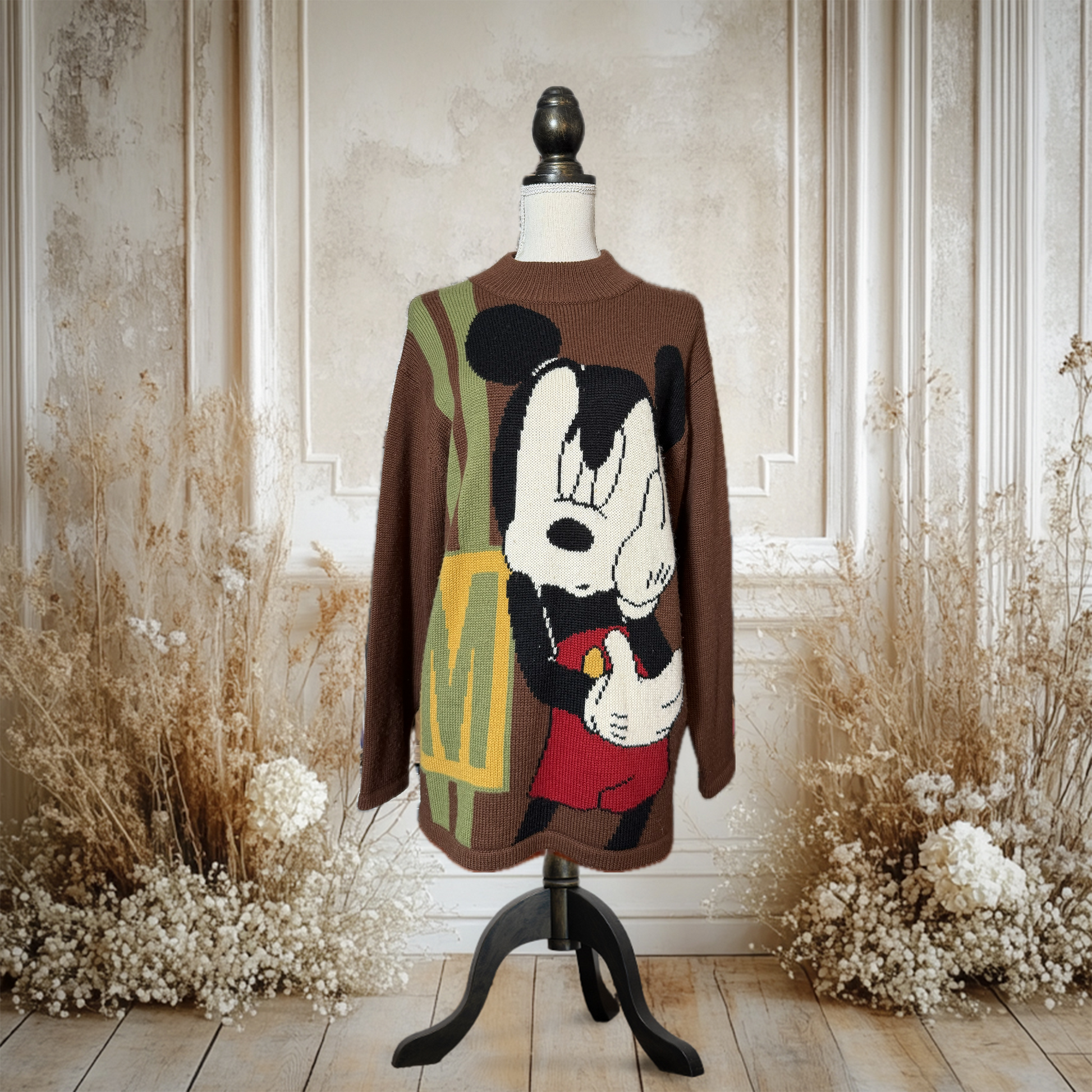 大胆に配置された“アゴのせミッキー”がインパクト抜群なニット。ブラウンベースにレトロな配色で、どこかユーモアとアートを感じる一枚。オーバーサイズでゆったり着られ、1枚でも主役級。思わずクスッとするデザインながら、上品さも残した遊び心あるヴィンテージニット。 ▶︎エバーアスタープレミアムパス購入で10%OFF →8,271円