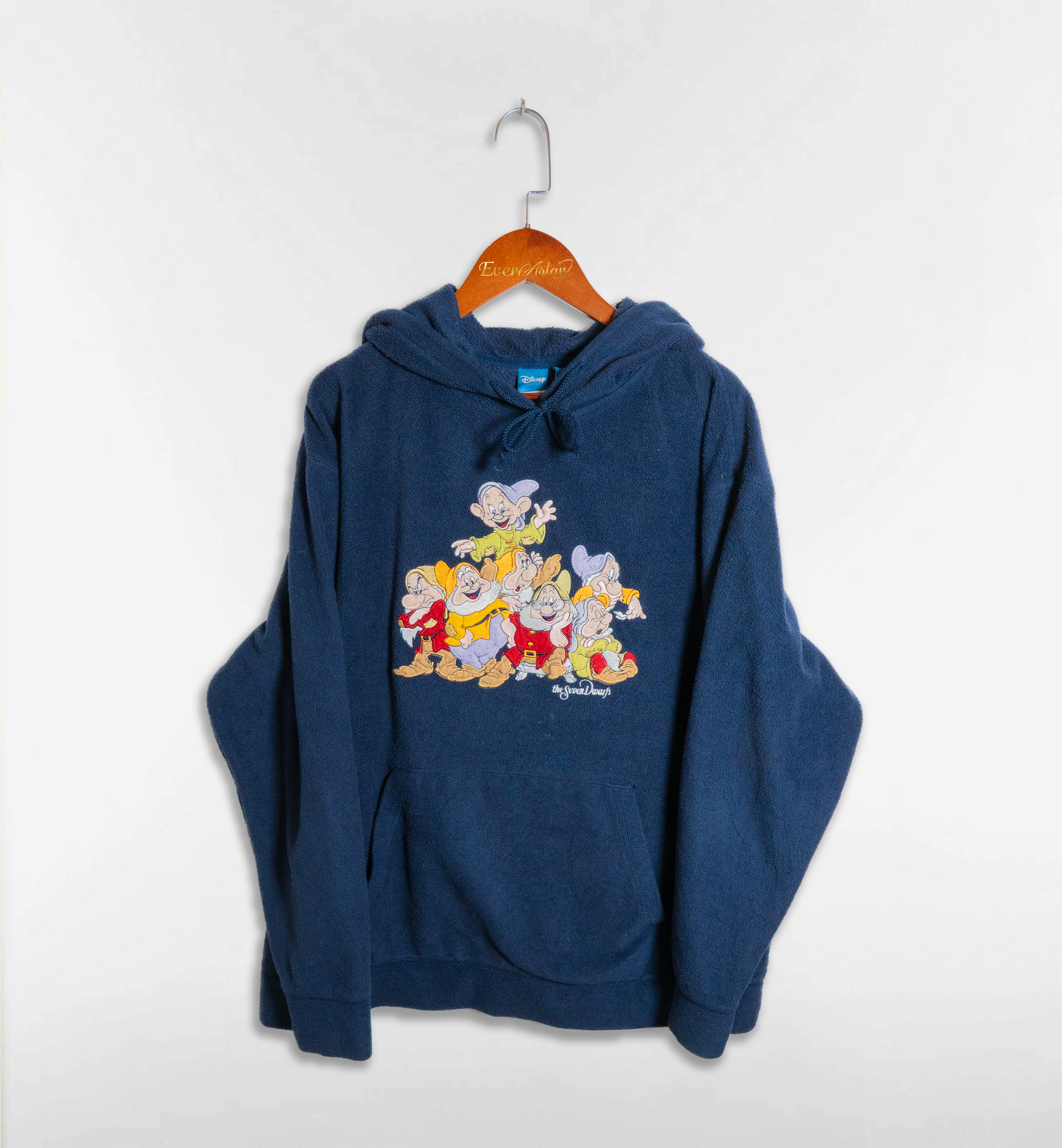 フロントに七人の小人がにぎやかに並ぶ、存在感のあるリユース品のフーディ。