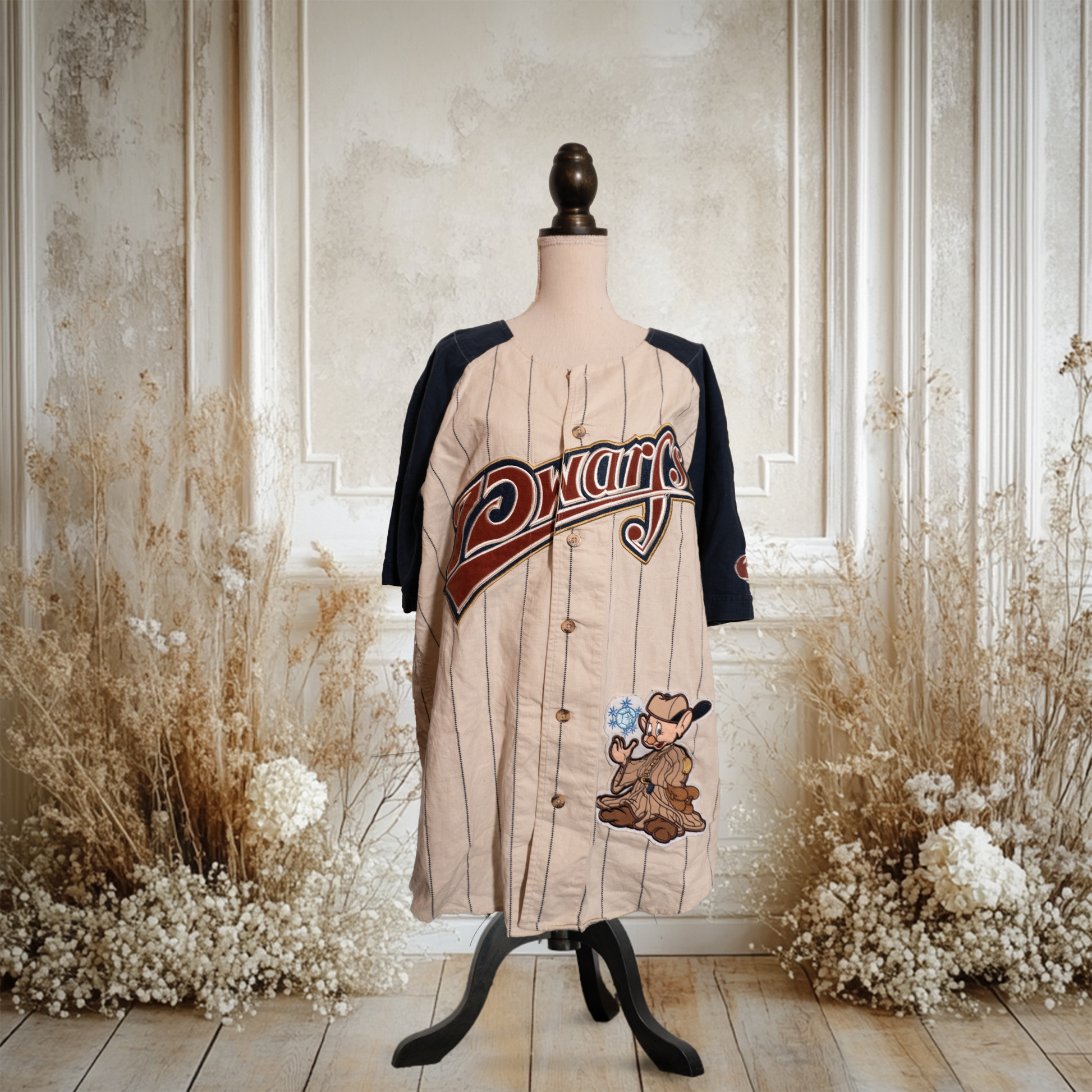 白雪姫の「おとぼけ(Dopey)」をフィーチャーしたベースボールシャツ。