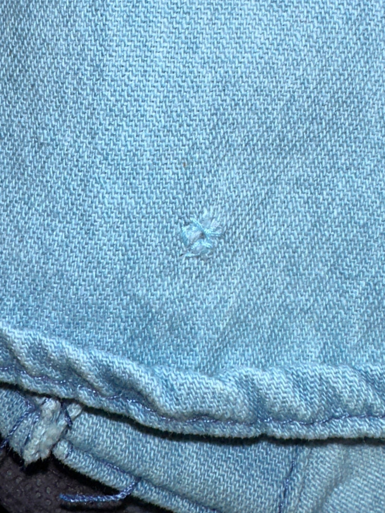 大部分の汚れ落としとボタン取り替えを当店側で行っております!また、穴補修は耐久性のために裏からデニム生地貼り付け+縫い付けで補修しております。ご理解のある方のみご購入ください!