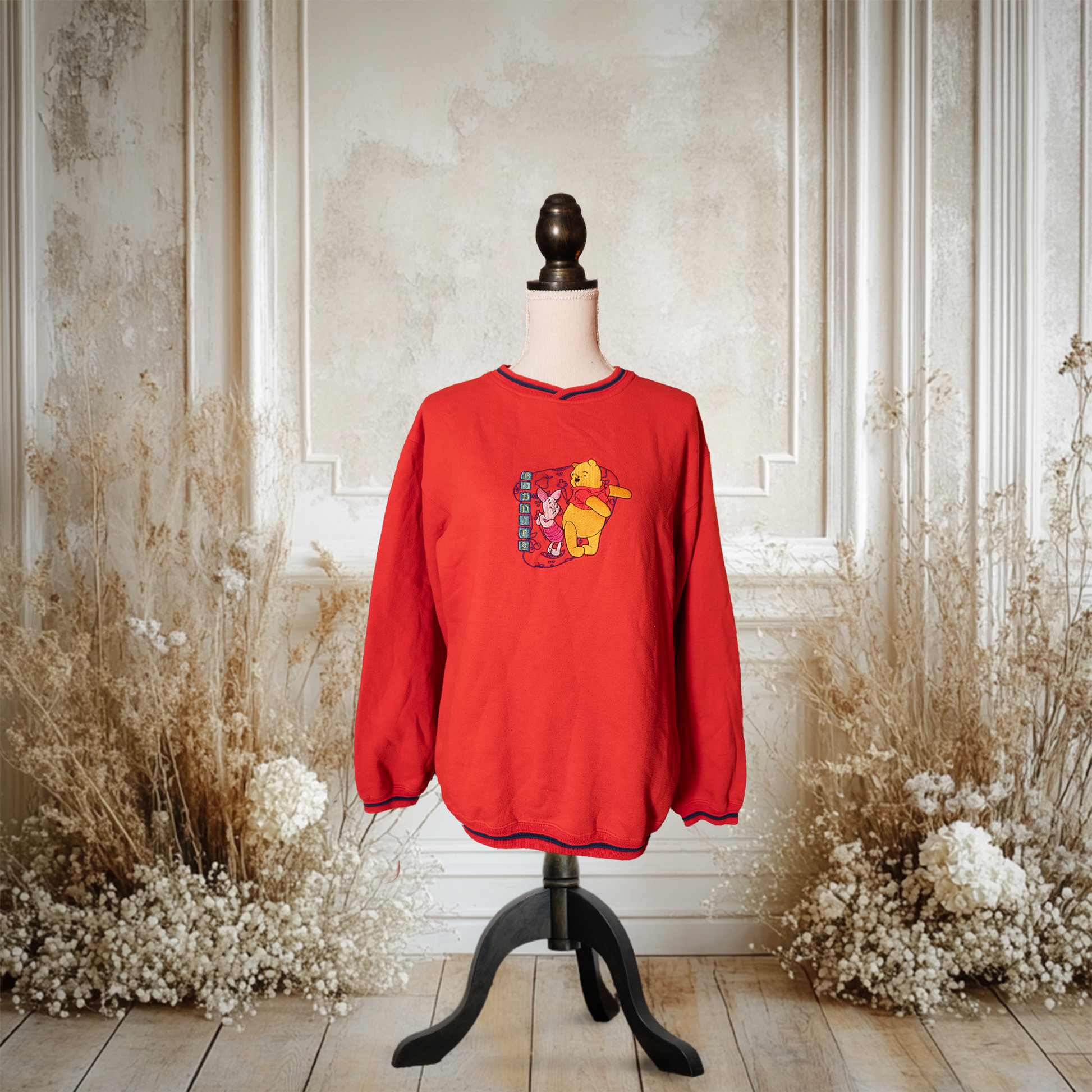 プーとピグレットが刺繍されたVネックのスウェットです。ネックに紺色のラインが入るのが特徴でこれからの季節にぴったりな色合いです。