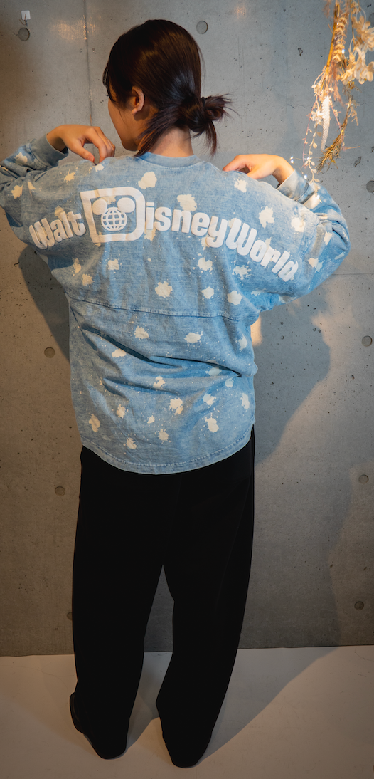 前面は胸元だけさりげなく、バックに大きくWalt Disney Worldのロゴが入るデザインで、裏表どちらから見てもしっかりディズニー感が楽しめます。