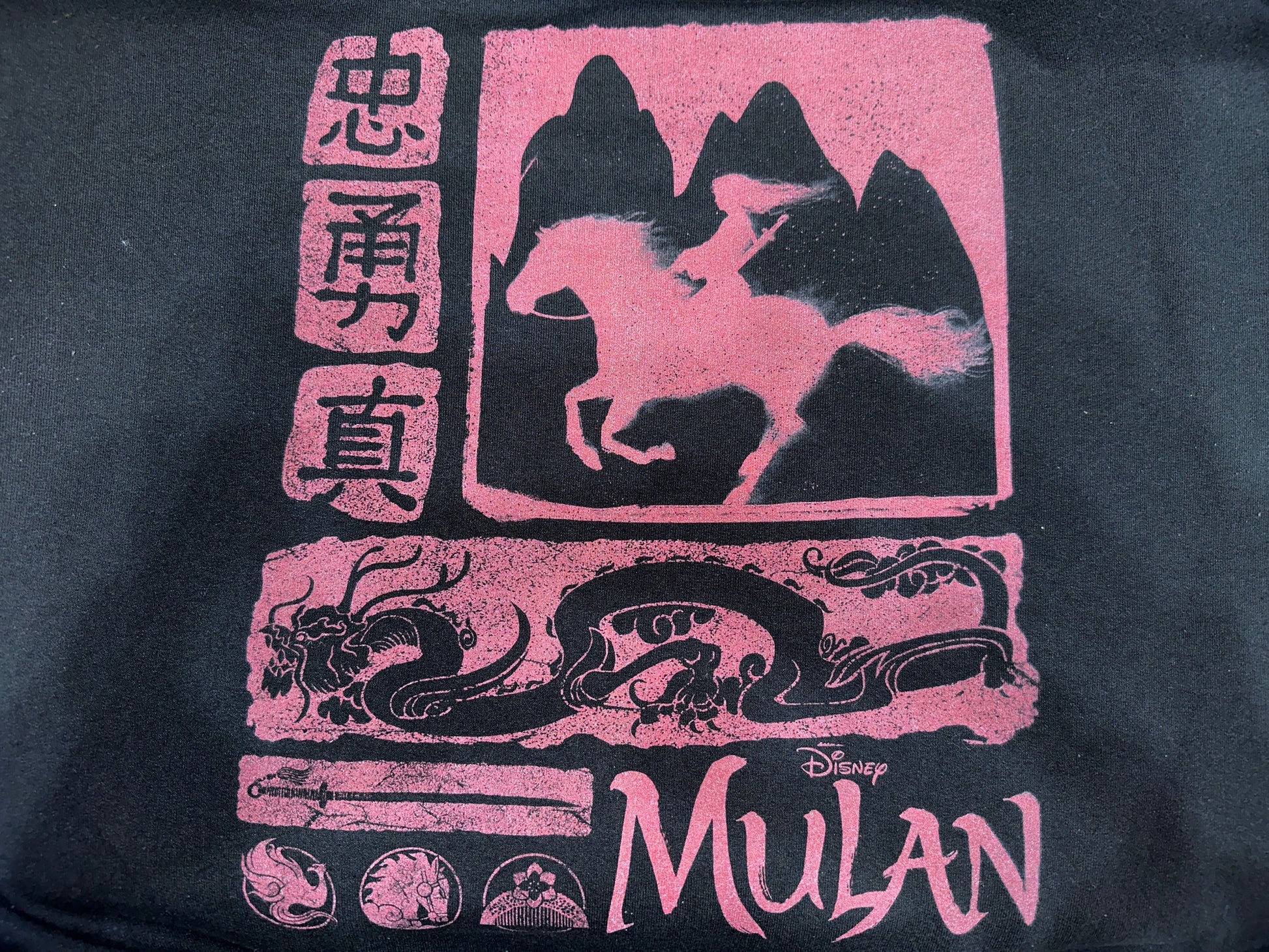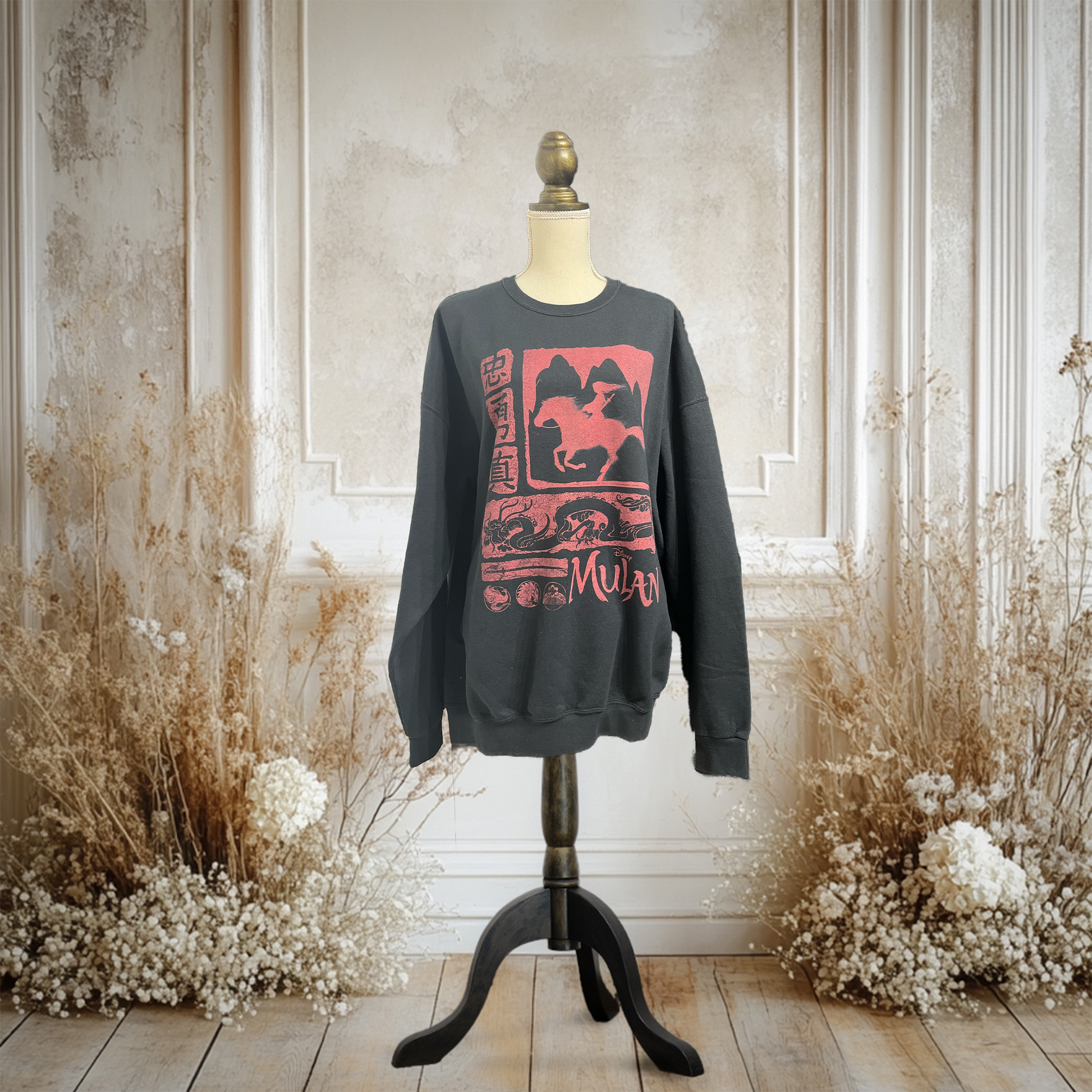 ディズニープリンセスからムーランのスウェットです。某通販サイトでブート品が出回っているデザインですが、こちらディズニー印字がある正規品です。
