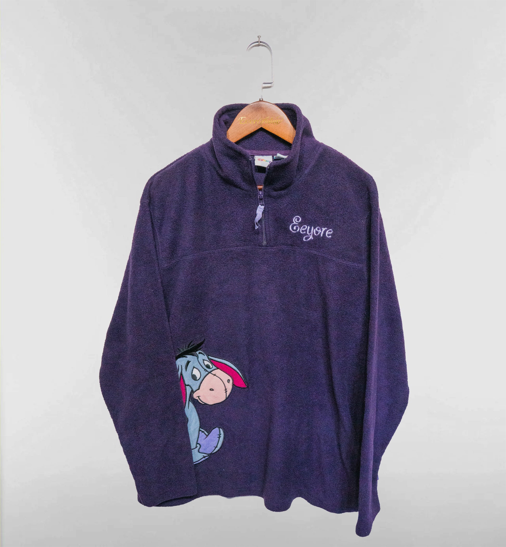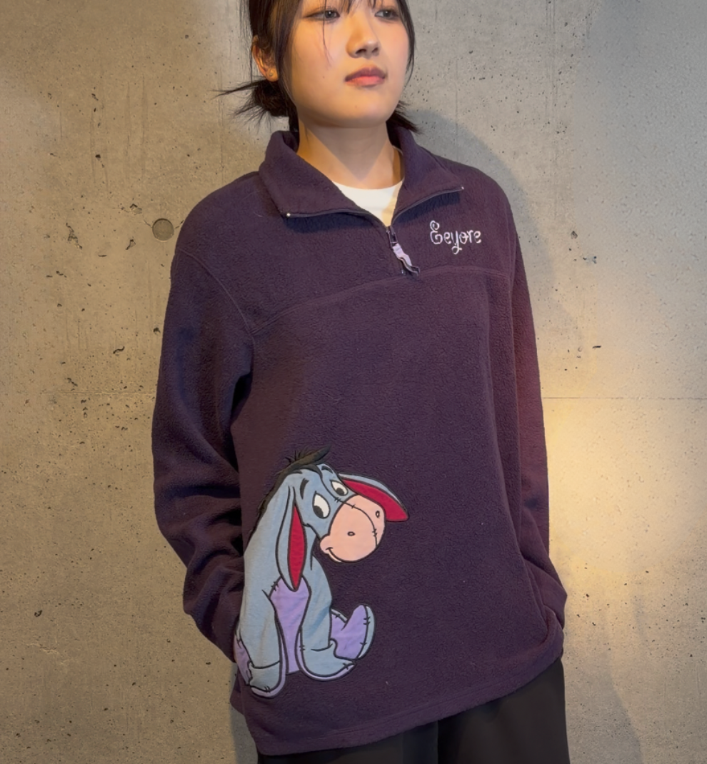 フロントにイーヨーの刺繍が施されたハーフジップフリースです。