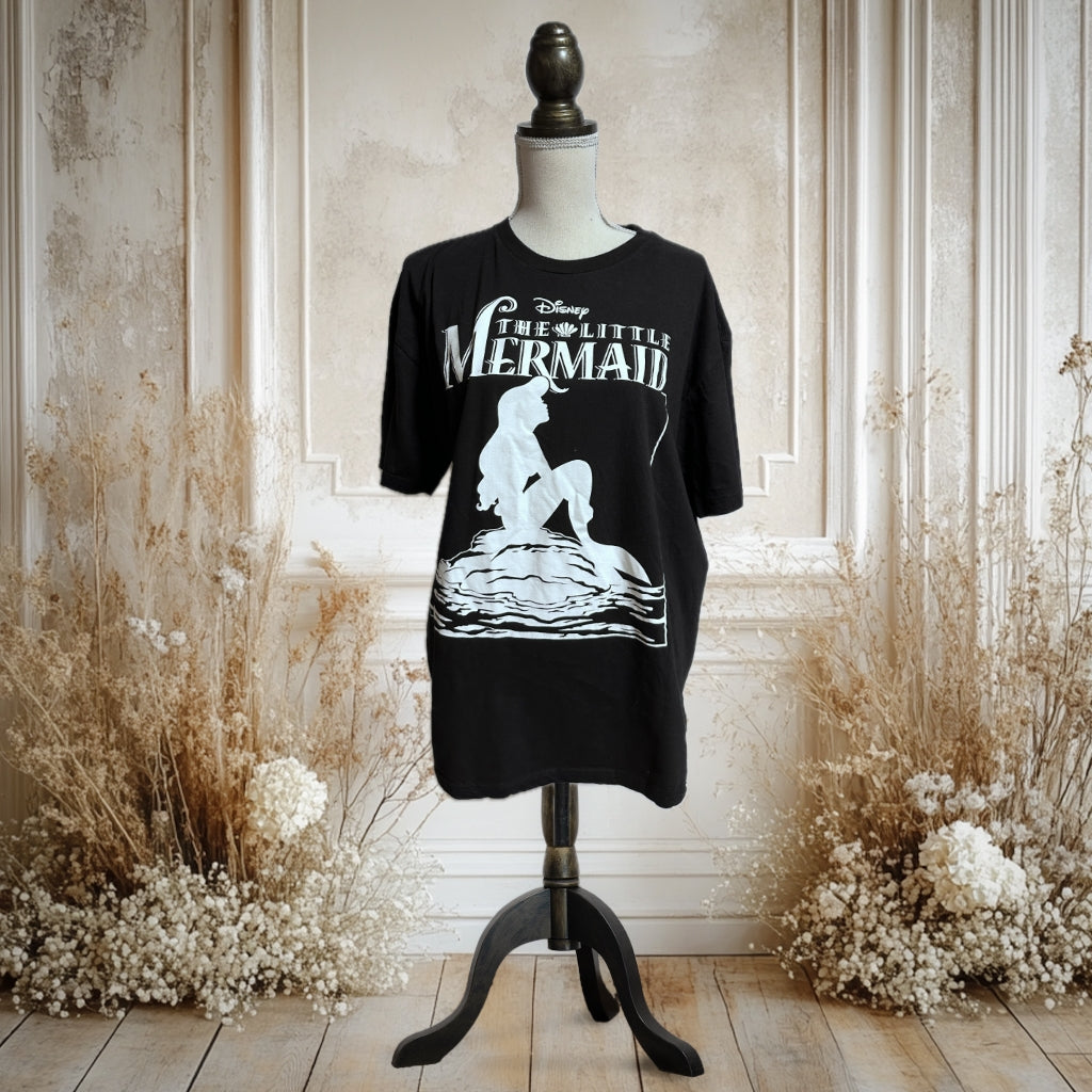 人気なアリエルのブラックTシャツです。モノクロの着やすいデザインになっているので珍しく男性も着られるプリンセスTシャツになっています。ユニセックスにおすすめです!