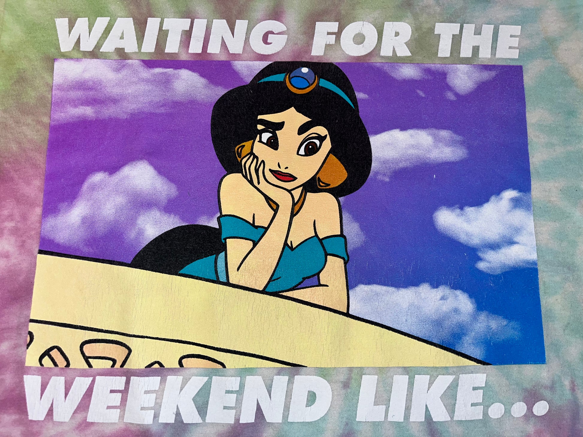 ジャスミンのアリ王子を眺める怪訝な表情が可愛いタイダイの夏らしいTシャツです!