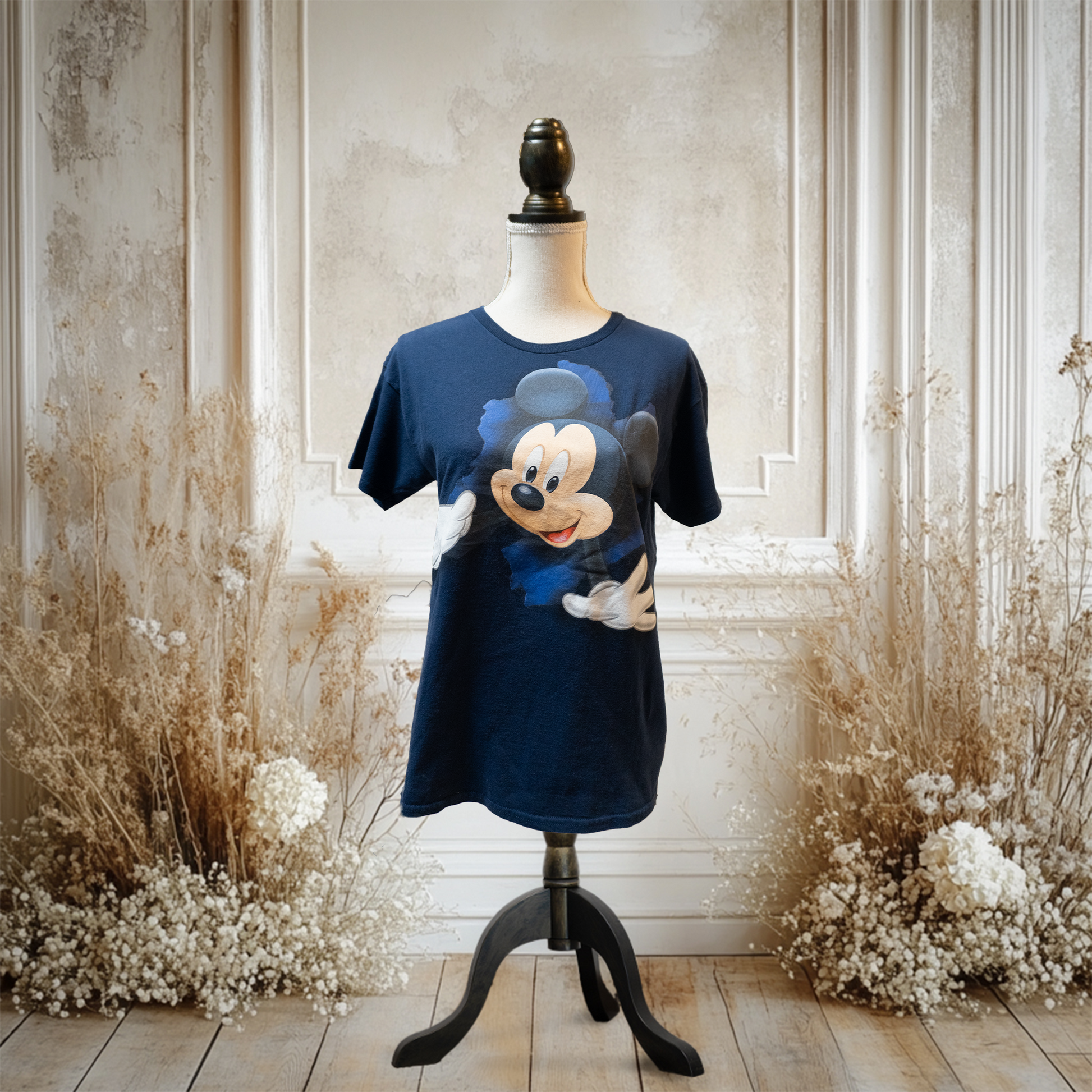 ミッキーの人気な両面プリントTシャツです!!人気のデザインかつ落ち着いた紺色で使い回しが良いです!