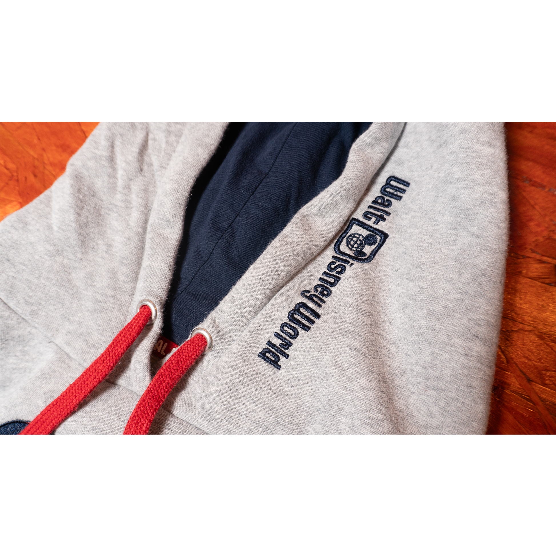 袖やフード後ろに色の切り替えがございます。また、フード部分にはWDWのロゴが刺繍されています。